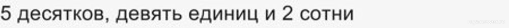 5 десятков это 5×10=50. 9 единиц это 9×1=9. 2 сотни это 2×100=200.