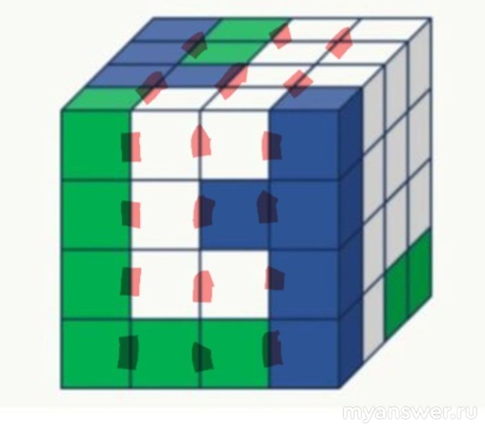 Теперь необходимо сложить полученные белые кубики на каждом из слоев: 0+3+9+10=22.