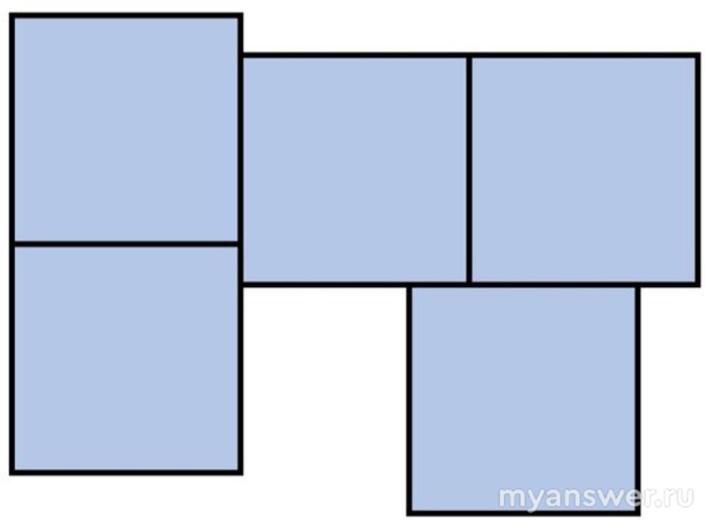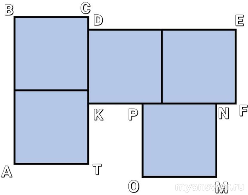 Из условия задачи нам известно, что площадь каждого квадрата на рисунке равна 100 см2. Таким образом, каждая сторона у квадратов будет равна 10 см.
