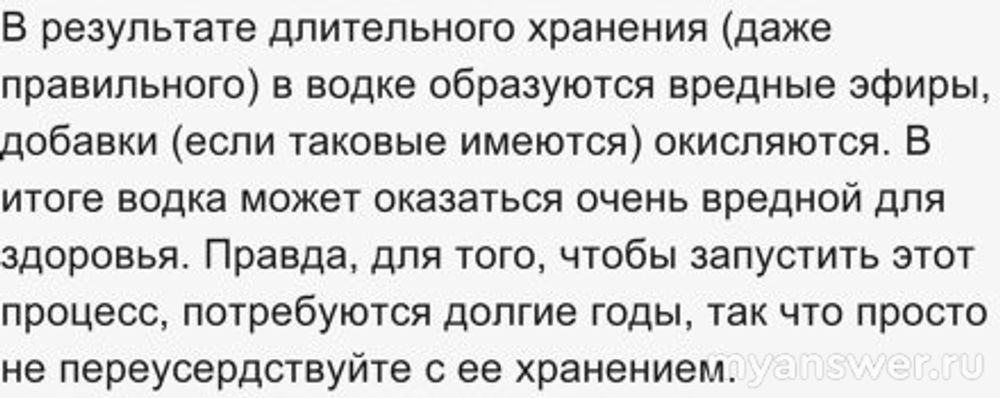 Да и очень старая водка - опасна для здоровья: