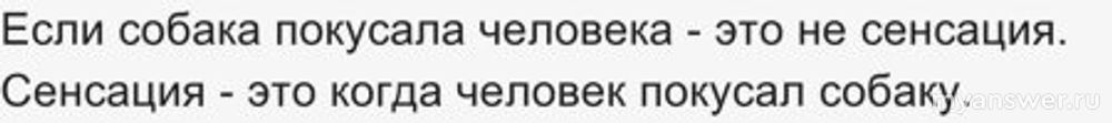 Вот с негодяями и нормальными то же самое. Кому интересно читать про нормальных людей? Это скучно! В нормальной жизни нормального человека не происходит ничего экстраординарного, "ненормального", того, что могло бы заинтересовать других, что выглядело бы необычно. Тогда как негодяи всегда готовы отчебучить что-то негодяйское, выходящее вон из ряда. Способны породить сенсацию. Пусть даже это чёрная сенсация (собственно, какую ещё от негодяев и ожидать-то...).