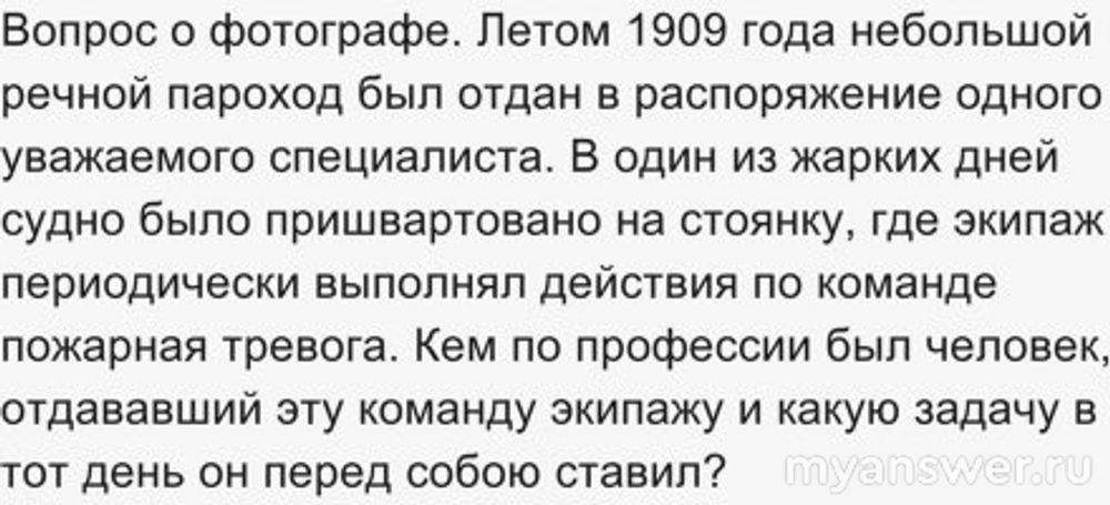 По профессии человек, отдавший в 1909 году команду в пароходе, был фотографом. И ответил Денис Тепляков с помощью клуба. Автор вопроса получит вознаграждение. Но так команда сравняла счёт. Потом победила.