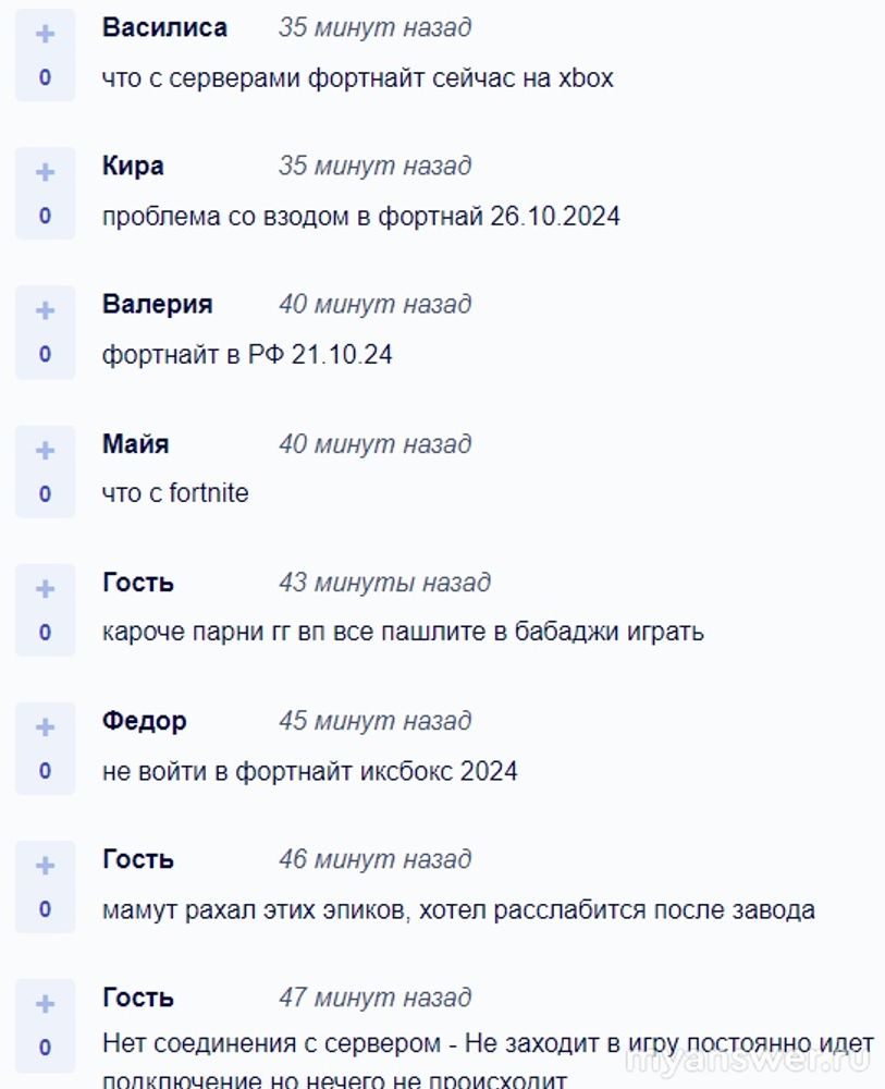 Начиная с 18:00 по московскому времени 21 октября 2024 года популярная игра Fortnite перестала работать корректно. По отзывам либо нет соединения с сервером, либо игра работает, но медленно, либо не загружается приложение.