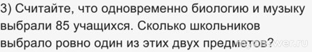 Если биологию выбрали 85 учащихся, то биологию без музыки выбрали: