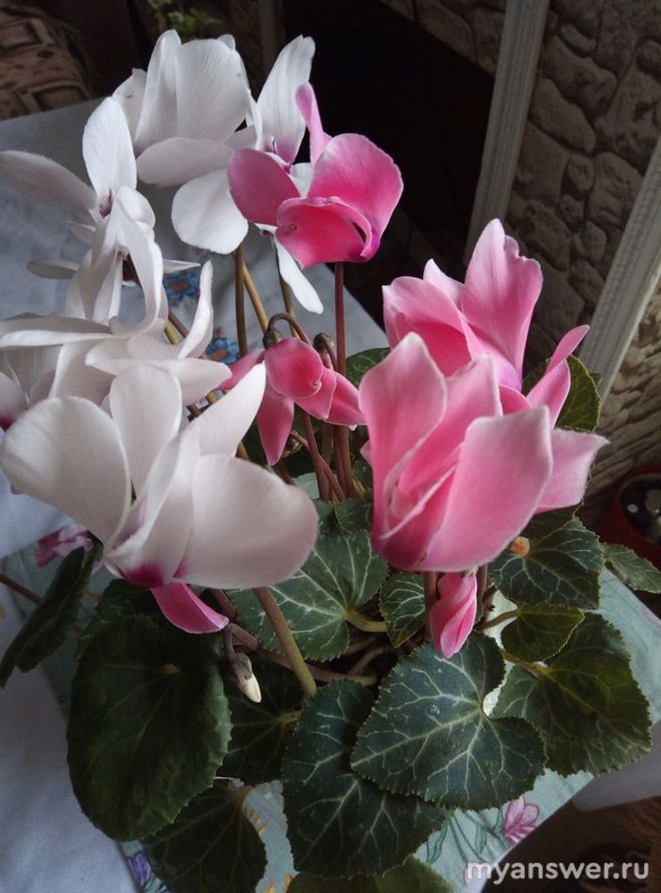 Комнатные растения выращиваю по такому принципу: цветущие зимой и цветущие летом. Обязательно даю отдохнуть растению, тогда и цветение обильное.Сейчас у меня начали бурно цвести цикламены (они вышли из периода покоя). За окном будет зима, холод, снег, а эти красавцы будут радовать глаз,и, даже, ими можно будет украсить Новогодний или Рождественский стол.(Фото прилагается).