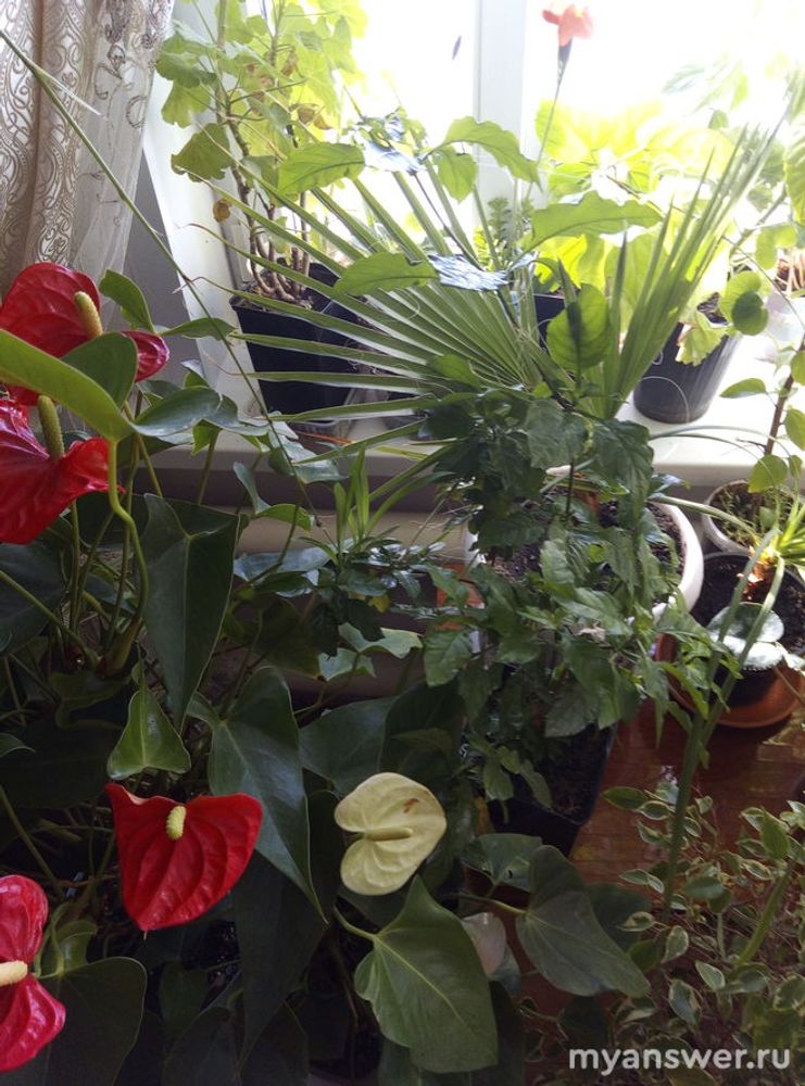 Так же у меня есть пальма Арека, фикус Бенджамина, толстянка, алоэ, 2 вида поющей, 2 хлорофитума и сансевиерия. Так же пытаюсь укоренить черенок традесканции.