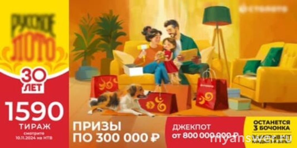 10 ноября в воскресенье состоится розыгрыш 1590 тиража лотереи "Русское лото".