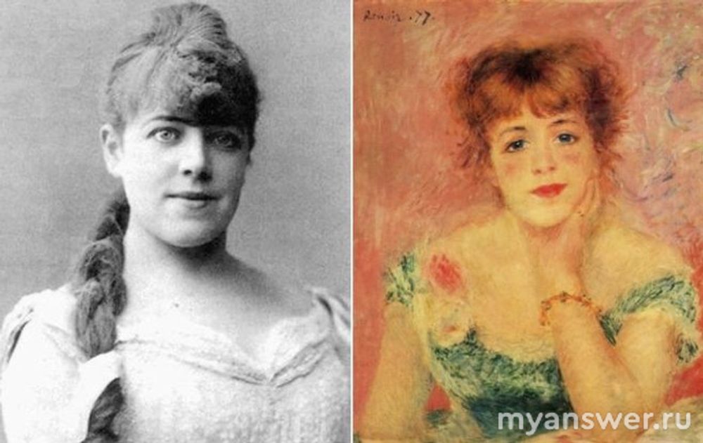 Во время знакомства с Ренуаром Жанне было около 20 лет, она была уже довольно востребованной актрисой театра «Комеди Франсез». Родители Жанны заказали ее портрет, так она стала моделью художника.