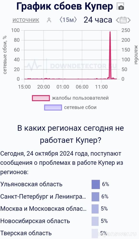 Не работает сайт и приложение Купер 24.10.2024 года, почему, что делать?