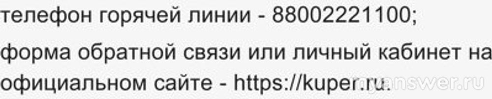 Обратиться за консультацией, с просьбой обозначить что происходит, как быть с проблемной ситуацией в случае, когда не работает сайт и приложение Купер полно, написав в обратную связь или позвонив на телефонный номер горячей линии: