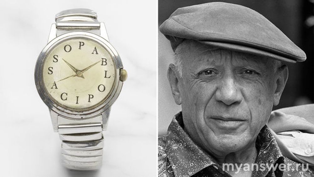 Я прочитала что часы были проданы на аукционе за $267 000. Художник носил эти часы, они ему понравились. Есть фото на которых он в часах. Часы не дорогие, в стальном корпусе. Вопрос об особенности этих часов, которые подарил Пабло Пикассо поклонник его творчества был задан 27 октября на последней отборочной игре осенней серии команде Дарины Сибуль. Решалось кто победит: знатоки или телезрители. Ведущий предложил команде взять минуту в кредит . И не зря. Данила Горлова осенило. В словах Пабло Пикассо 12 букв как цифр на циферблате. Вместо цифр на часах были буквы имени художника. Ответ - на часах вместо цифр были буквы имени Пабло Пикассо.