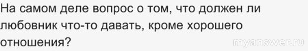 На самом деле вопрос о том, что должен ли любовник что-то давать, кроме хорошего отношения? Что Вы думаете об этом?