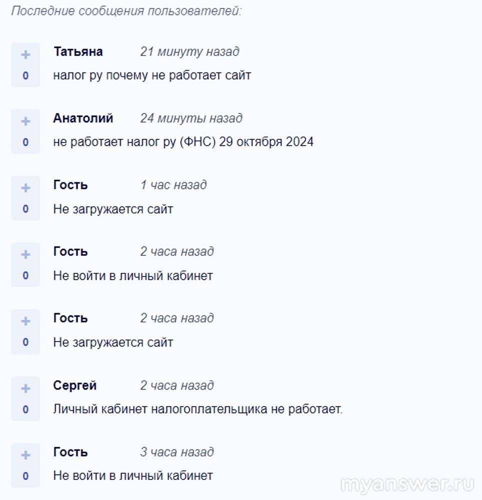 Налог Ру (ФНС) не работает 29 октября 2024 года в некоторых российских регионах. Ещё вчера 28 октября с утра в 9:15 (по-московскому) начались сетевые сбои в Налог Ру.