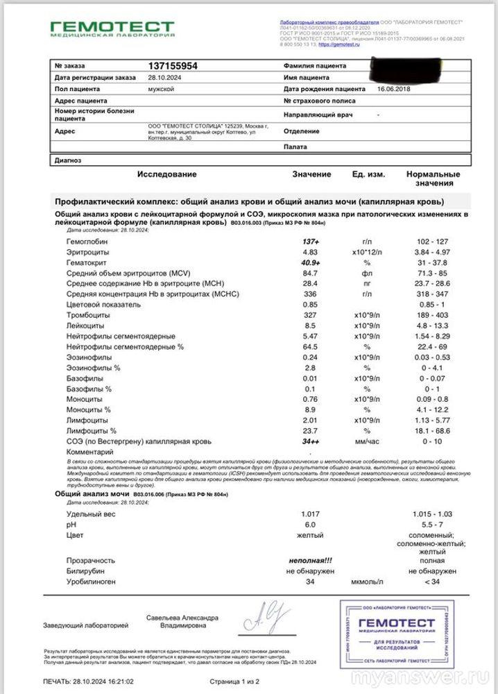 Педиатр 26.10.24 (так как не спадает температура и по результатам ОАК и ОАМ) назначает Клацид 250/5 по 7 мл. раз в день, параллельно пьем Бак Сет форте 1 капсула в день, Зодак 10 капель в день.