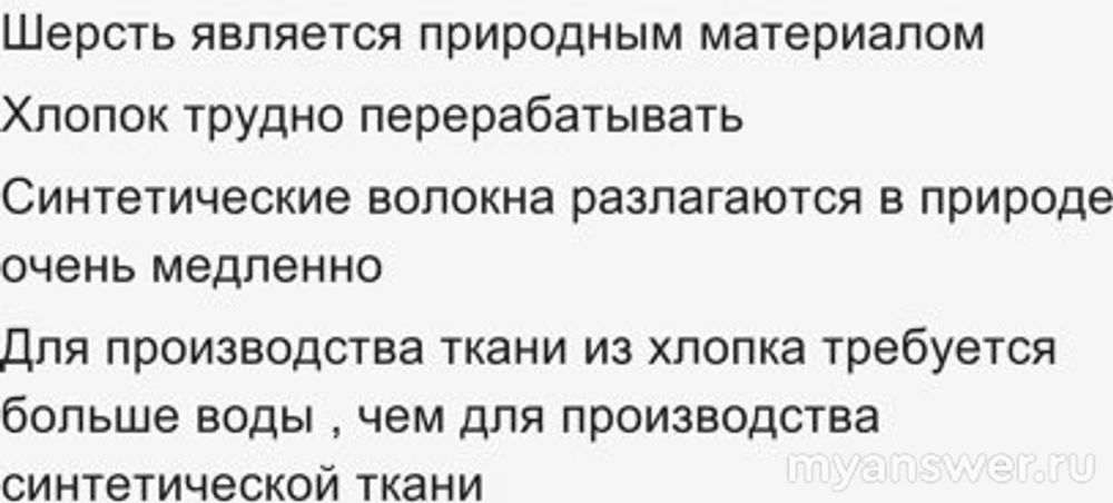 Ответ: 2. Хлопок трудно перерабатывать.