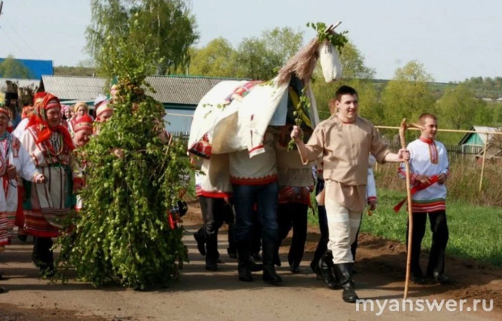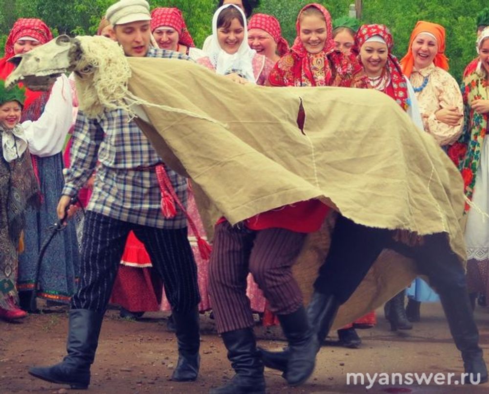 В русских селах Нижегородской области водят условного "коня" на праздник Троицы, который уходит корнями в языческие верования славян.