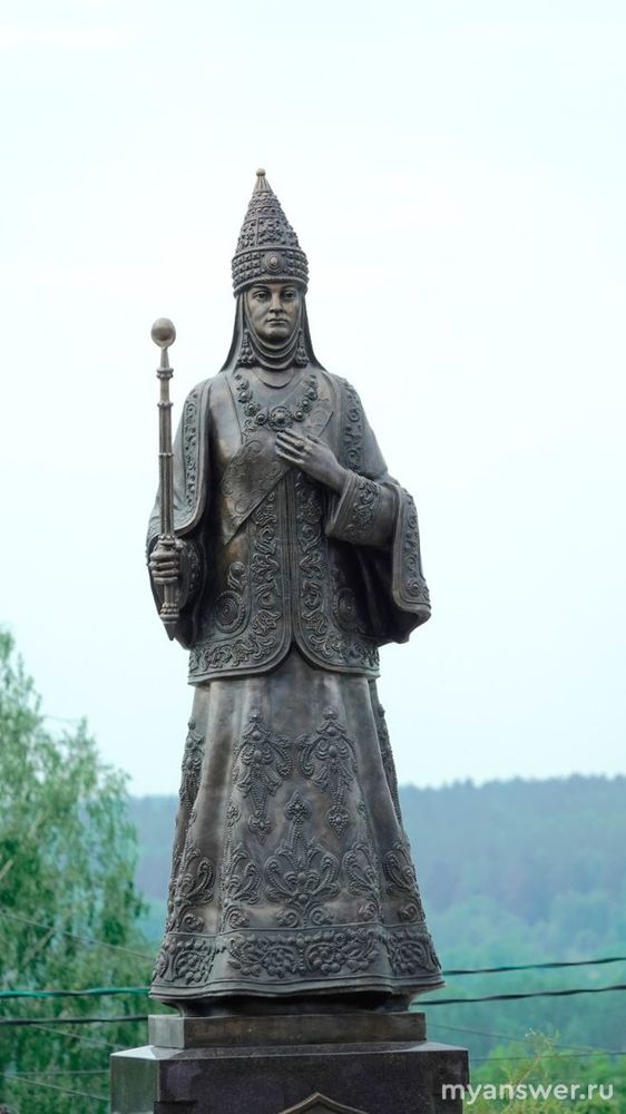 Данный памятник установлен к 1100-летию принятия ислама Волжской Булгарией и к 870-летию города Касимов (города двух культур - русской и татарской). Судьба этой правительницы тесно переплетена с городом, так как именно здесь она была законной супругой хана Шах Али, занимая пост царицы. Личность это правительницы неоднозначная, но в настоящее время считается символом татарских женщин. Памятник царице - это место притяжения всех касимовцев (укрепление связей культур), а также магнит для туристов. Бронзовый монумент отлит в петербургских мастерских, высотой 3 метра и весом почти 1,5 тонны.