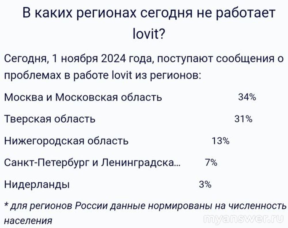 1 ноября 2024 года около 12 часов дня по московскому времени засбоила система провайдера "Lovit".