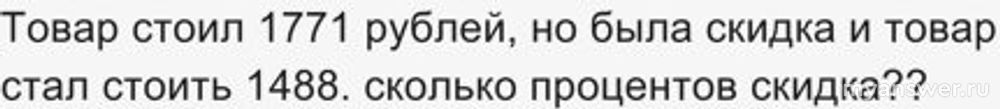 Товар стоил 1771 рублей, но была скидка и товар стал стоить 1488. сколько процентов скидка??