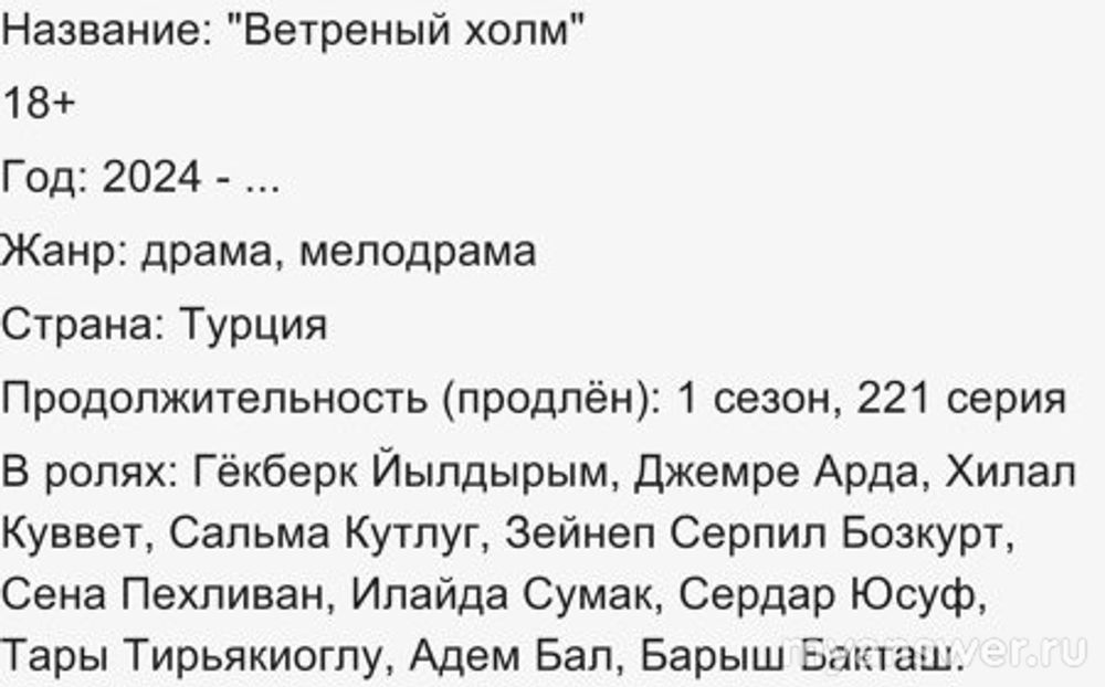 Фильм Ветреный холм, 2024, Турция - когда 221 серия?
