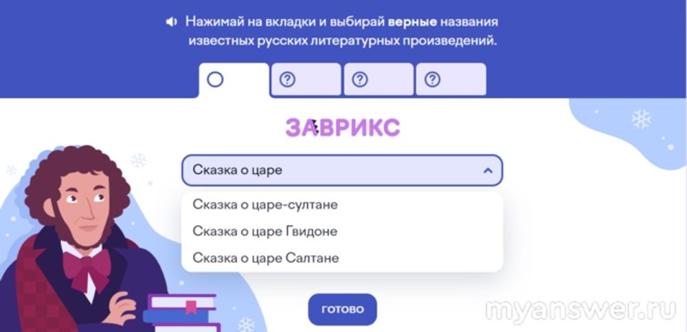 Нажимай на вкладки и выбирай верные названия известных русских литературных произведений.