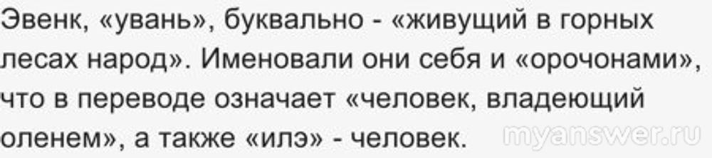 Слово эвенк, которым называет себя одно из племен, живущих в основной массе в самых холодных местах нашей страны арктического и субарктического поясов, занимаются скотоводством. Они разводят северных оленей, которые дают им все для проживания в суровых климатических условиях. Для названия эвенков придумано многосинонимовв, и одно из них действительно означает человек едущий на олене. Но это слово орочён.