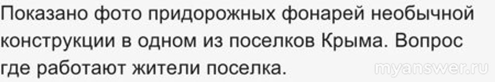 Показано фото придорожных фонарей необычной конструкции. Вопрос, чем занимаются жители этого поселка, какая у них профессия?