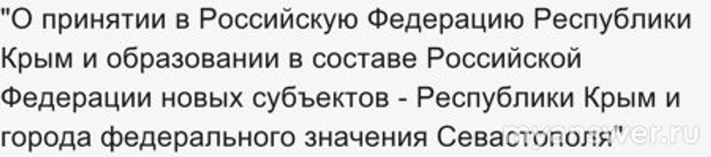 "О принятии в Российскую Федерацию Республики Крым и образовании в составе Российской Федерации новых субъектов - Республики Крым и города федерального значения Севастополя" .