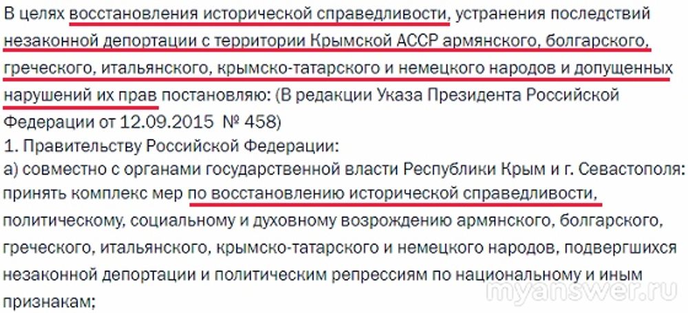 Днём исторической справедливости в Крыму называют 21 апреля. В этот день Президент России подписал исторический указ. О каком правовом акте идет речь?