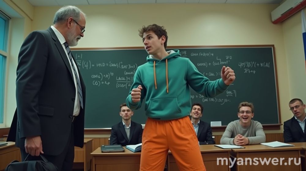 Учителю это не понравилось, и, по словам подписчицы, он пустил в ход не только словесные аргументы, но и, как оказалось, собственные ноги. Школьник тем временем не оставался в долгу: схватился за стул и дал отпор "по законам физики", в стиле Ньютона, прикладным примером второго закона. Всё это сопровождалось громкими комментариями и смешками класса.