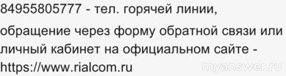 технической поддержкой RialCom, а сделать это можно по телефону, позвонив на горячую линию, либо написать в обратную связь: