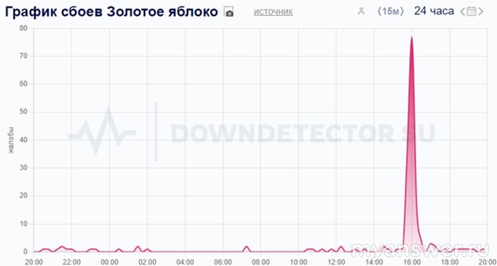 Всплеск жалоб от пользователей пришелся с 16 до 18 часов вечера (по московскому времени) а затем резко спал. Возможно что уже связь онлайн наладили, и сайт золотое яблоко снова стал доступен во всех регионах.