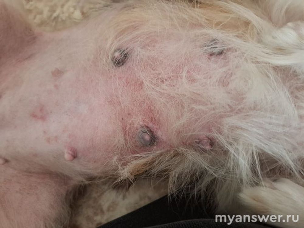Взял недавно собаку девочку с улицы, на вид ей чуть меньше года, и у неё 4 соска опухшие и тёмные чем другие, и живот очень красный. У неё есть блохи, но я пытаюсь их вывести шампунем и каплями от блох. От чего у неё может такое быть? Мне 13, мама не даст денег, чтобы я её отвёз по ветклиникам, поэтому я хочу как-то, если это возможно, вылечить собаку сам. Это опасно или нет?