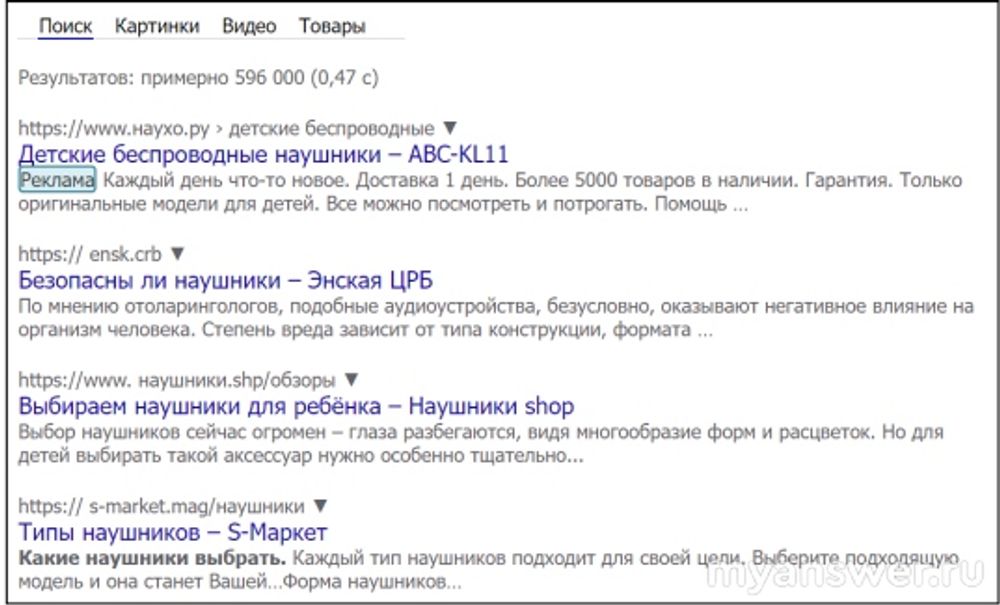 На что указывает пометка Реклама, размещённая для сайта https://www.наухо.ру?