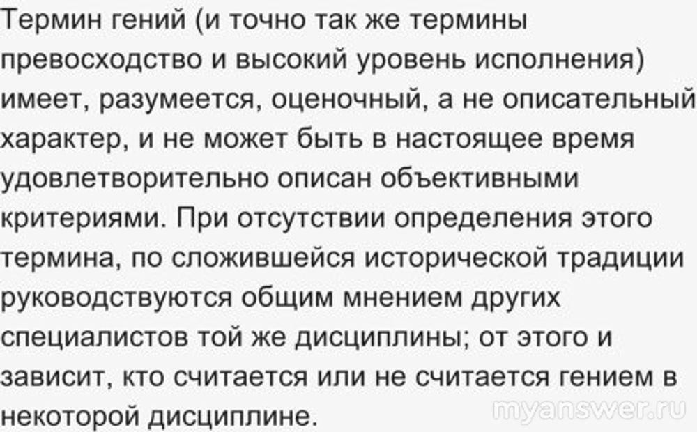 Из этих определений для меня очевидно, что как для достижения высшего уровня интеллектуального или творческого функционирования личности, так и для общего мнения специалистов в дисциплине о человеке как о гении, вряд ли поможет стандартное мышление, скорее наоборот. Гениальность - это всегда нестандартность и отступление от привычного в той или иной мере. "Гений со стандартным мышлением" звучит как оксюморон.