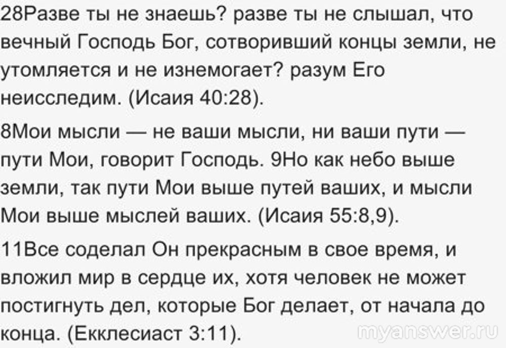 Так же, нельзя не отметить - что у Бога непостижимый для человека разум. Вот например некоторые стихи из Библии: