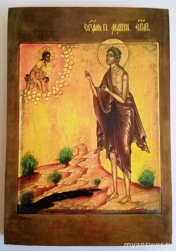 Бога, Вознесение Христа, ангелов, изображают на иконах парящими на облаках. На иконе внизу- святая Мария Египетская общается со Христом, который пребывает в небесах.