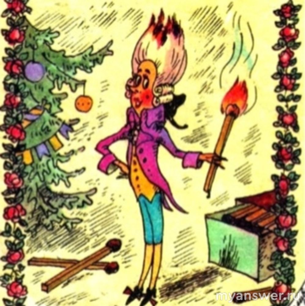 2.2.Комическая составляющая сказки в том, что практически бесполезная лучина возомнила себя кем-то великим и значимым. Курилка считает себя лучше и умнее других, а сам настоящий лгунишка и без конца хвастается. Он никого не хочет слушать, не считается с чужими пожеланиями, наоборот, всем навязывается, учит жизни. Он дает советы, даже, когда его об этом не просят. В конце сказки мы видим, что до добра это Курилку не довело. Он в печке сгорел.