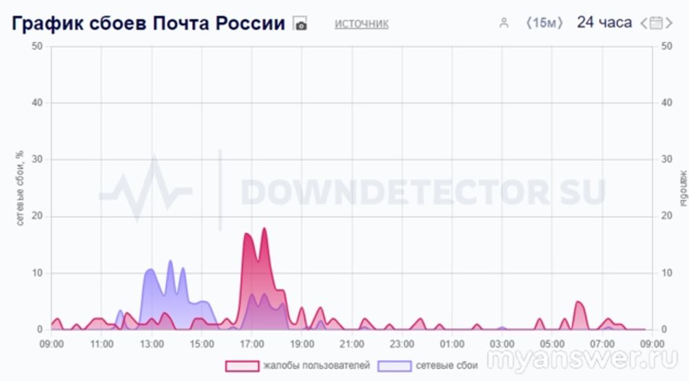 14 ноября 2024 года с 12 до 13 часов дня по московскому времени возрос уровень жалоб в связи с техническими сбоями в работе системы "Почта России".