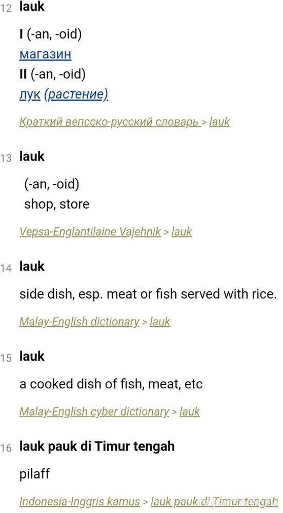 В карельском языке много заимствований из русского. Что в людиковском наречии карельского языка значит слово lauk?
