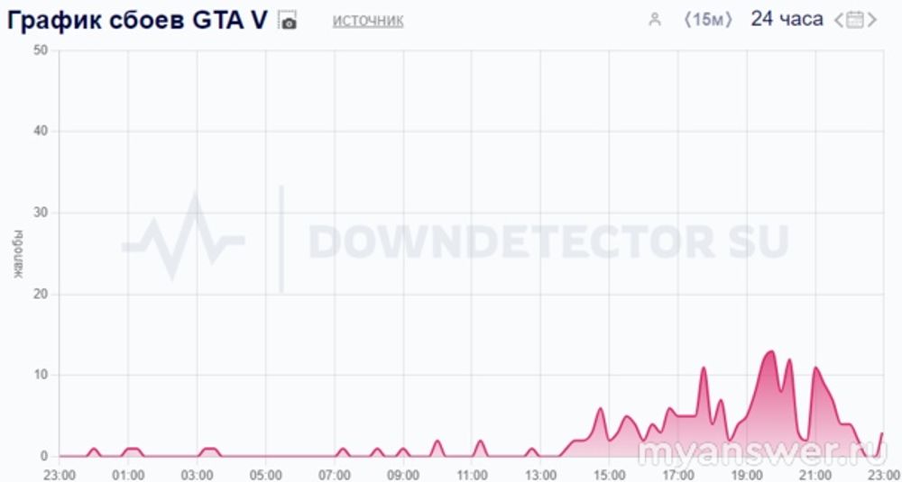 Игровой сервер GTA V (ГТА 5) перестал работать онлайн с 15 на 16 ноября 2024 года в российских регионах. Пользователям не зайти на сайт - отсутствует интернет соединения. Но график мониторинга проверки портала показывает что никаких сетевых сбоев нет. Одни лишь жалобы от пользователей поступают с некоторых российских регионов: Пермского и Камчатского края, Ленинградской области, Кабардино-Балкарской Республики, Архангельской обл.