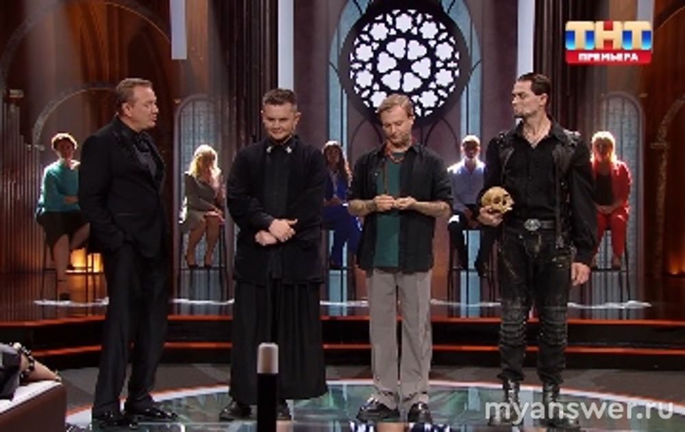 И первым испытание проходил Котов. Ему досталась заповедь, не прелюбодействуй. И нужно было среди присутствующих найти любовника или любовницу. Юлий объединил первую женщину с Башаровым. Почувствовал между ними связь. Подумал, что это подстава. Рассказал много о каждой из трех присутствующих. У каждой из трех претендентов, он увидел грешок в прошлом. А нужно было выбрать в настоящее время. И Юлий сделал правильный выбор. И даже связь между Башаровым назвал правильно. Башаров не узнал девушку, а вот она его узнала, и напомнила, где их пути пересеклись. Юлий от радости, что угадал, даже присел.