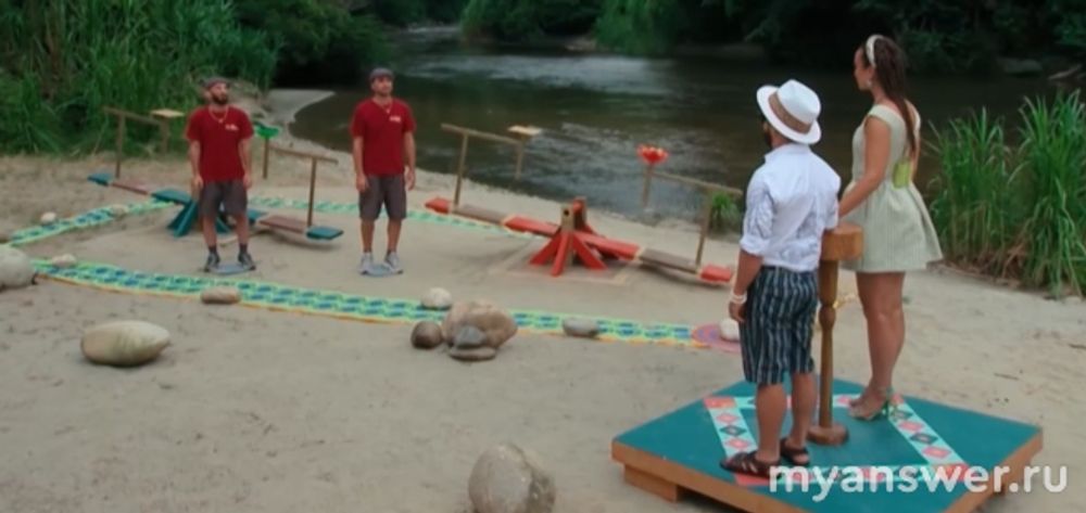 В малом испытании нужно было найти баланс на качающейся основе, выстоять и потом еще быстрее другого построить башню.