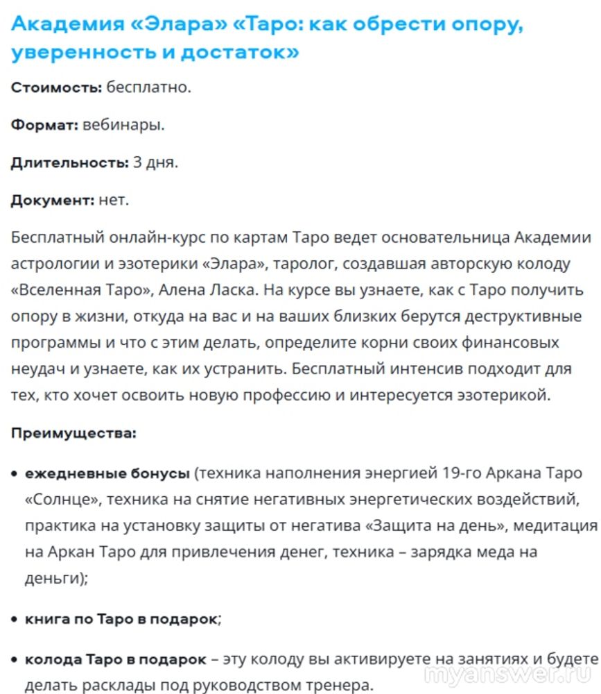 И скажу я, пришедшая к специалисту - выпускнику «Eridan»: «Мастер Таро»,