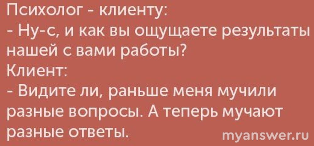 Поэтому, обращаясь к психологу, человек надеется получить положительный результат, помощь в решении своих проблем или хотя бы поднятие настроения от посещения.