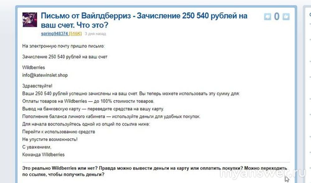 Соответственно переходить по ссылке и указывать какие-либо личные или платежные данные разумеется не стоит.