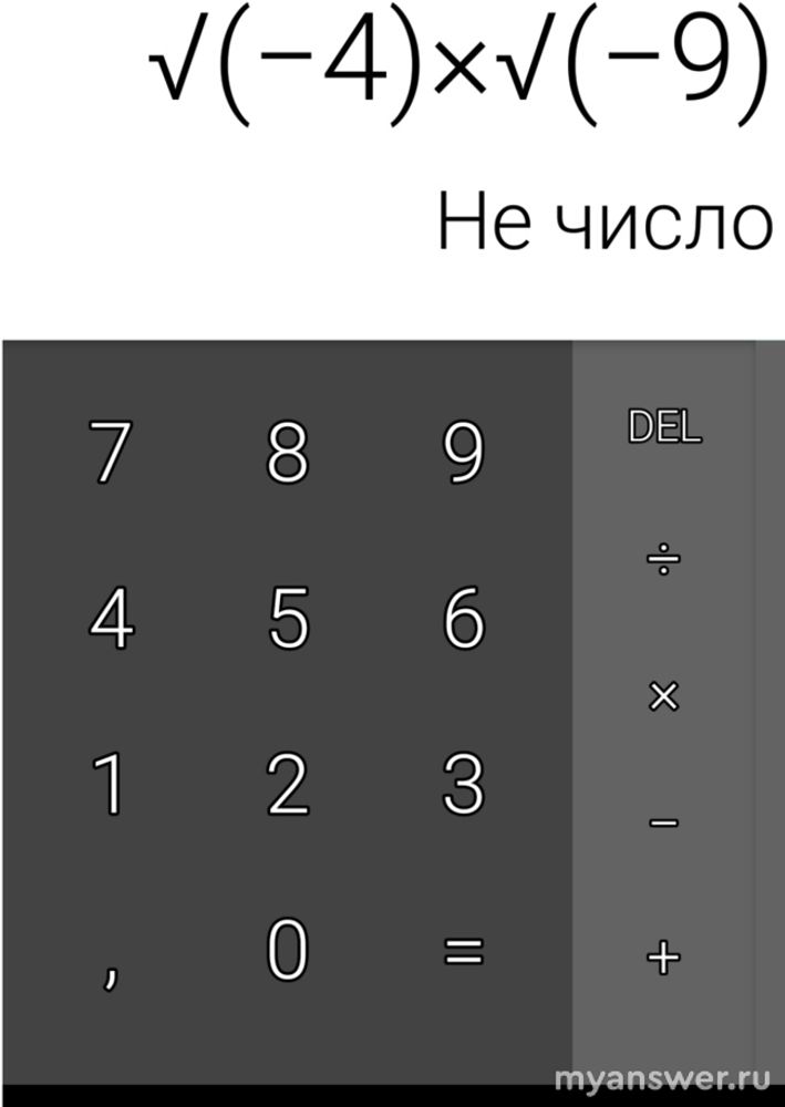 произведение корня из минус четырёх и корня из минус девяти равно 6