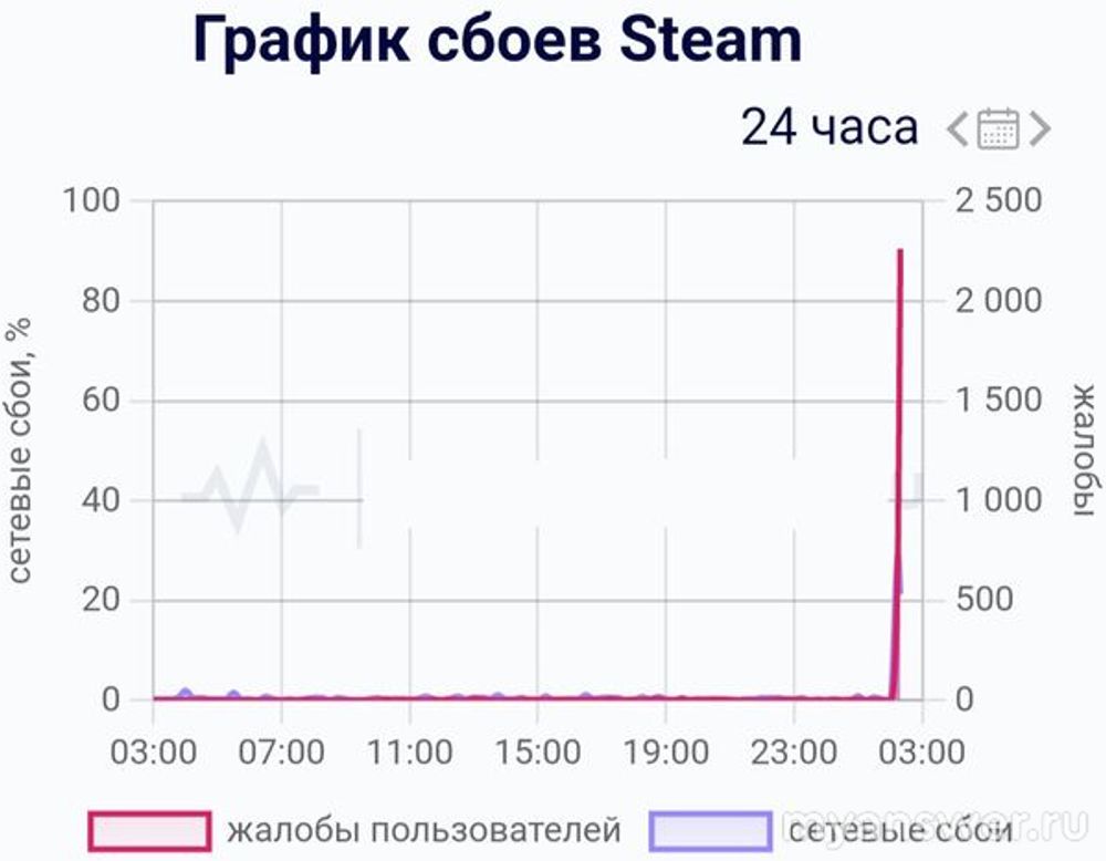 20 ноября 2024 года около 2 часов ночи по московскому времени весьма спокойный суточный график жалоб по работе платформы Steam вдруг резко преобразился и стал отображать огромное число откликов о проблемах.