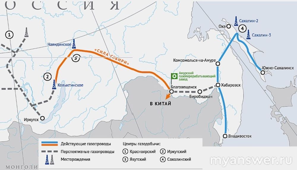 Самым очевидным ответом на часть этого вопроса оказалось Приморье. Действительно, его расположение прямо указывает на специфику промышленного сектора, рядом Китай, Корея и Япония, и огромные возможности предоставляет водное пространство. А вот выбирая регионы для газохимического комплекса и индустриального парка пришлось изрядно попотеть. Поскольку известно что на побережье северного Сахалина найдены богатейшие месторождения углеводородного сырья, реку Ноглики задолго до пришедших туда геологов, местные нарекли пачкающая (нефтяная), и сегодня на Охотинском шельфе 5 действующих ГКМ и это только начало. Но не будем забывать, что вся Якутия наполнена газоконденсатными месторождениями, разработка одного только Чаяндинского месторождения явл. вторым крупнейшим по России. Что же нам позволит сделать правильный вывод. Снова карта. Точнее легенда карты. В ней составитель (Газпром) не упомянул Амурскую область.
