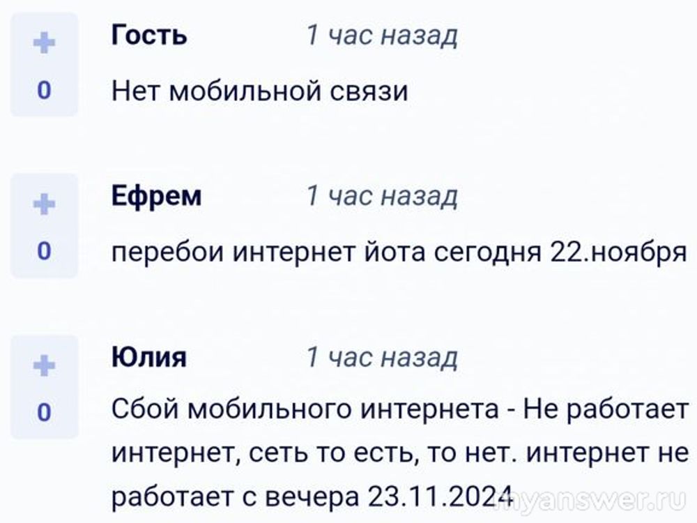 Не работает связь и интернет YOTA (Yota, Йота) 22.11.2024 года, почему, что делать, что известно, как исправить?